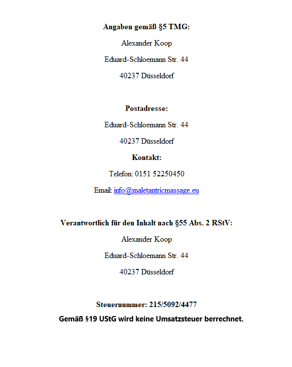 Als Diensteanbieter sind wir gemaess Paragraph 7 Abs.1 TMG fuer eigene Inhalte auf diesen Seiten nach den allgemeinen Gesetzen verantwortlich. Nach §§ 8 bis 10 TMG sind wir als Diensteanbieter jedoch nicht verpflichtet, uebermittelte oder gespeicherte fremde Informationen zu ueberwachen oder nach Umstaenden zu forschen, die auf eine rechtswidrige Taetigkeit hinweisen.